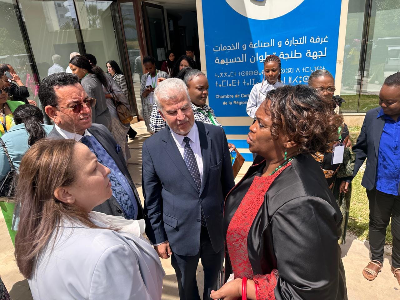 استقبل السيد عبد اللطيف أفيلال رئيس غرفة التجارة والصناعة والخدمات لجهة طنجة تطوان الحسيمة يومه الخميس 9 ماي بمقر الغرفة وفداً يضم 70 خبيرة إفريقية وذلك بتزامن مع الملتقى العالمي للخبيرات الافريقيات الذي نظم ما بين 7 و 10 ماي الجاري. وبالمناسبة ألقى السيد رئيس الغرفة كلمة ترحيبية أشاد فيها بالدور التي تلعبه المرأة الأفريقية على مستوى المبادرات المثمرة والهادفة في المجال الاقتصادية والتنموي بالقارة الأفريقية، مؤكدا على ضرورة تمتين العلاقات بين النساء المغربيات ونظيراتهن الأفريقية.