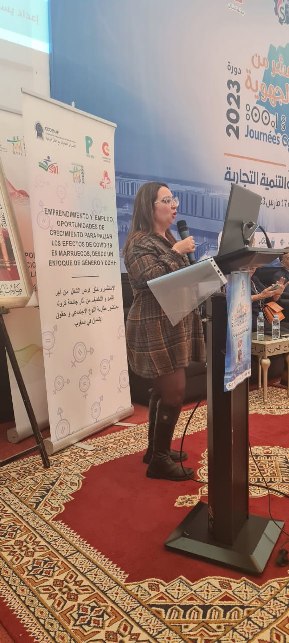 في إطار الدعم و المواكبة الذي تقوم به غرفة التجارة و الصناعة والخدمات لجهة طنجة تطوان الحسيمة لفائدة حاملي المشاريع من النساء و الشباب، و في سياق تطوير علاقات التعاون و الشراكة مع الجمعيات المؤطرة للنساء والشباب، وفي اطار النسخة 14 للايام التجارية، انعقد يوم الاثنين 13 مارس 2023 على الساعة الخامسة بعد الزوال بملحقة الغرفة، فعاليات حفل اختتام الدورة التدريبية لمشروع: ” فرص تنمية إدارة الأعمال والتشغيل للتخفيف من آثار كوفيد 19 في المغرب من منظور النوع الاجتماعي وحقوق الانسان” الممول من طرف الوكالة الإسبانية للتعاون الدولي AECID بشراكة مع جمعية CODENAV .