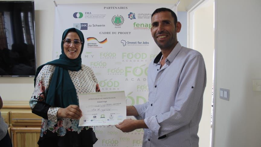 شارك اعضاء الغرفة بوزان السيد عادل قيقي والسيد فؤاد الاشهب الى جانب السيد فؤاد احلوش المدير الجهوي للغرفة والسيد ناصر الفقيه اللنجري مدير ملحقة الغرفة بتطوان يوم الجمعة 2 شتنبر 2022 مساء بمقر اكاديمية الصناعات الغذائية بوزان في فعاليات تكريم وتسليم الشواهد على المتدربين في الفوج الاول والثاني المستفيدين من التكوين النظري والتطبيقي بالاكاديمية.