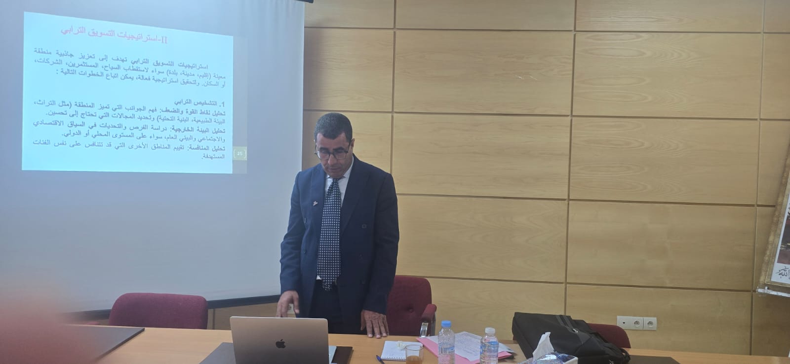 وتضمنت الحصة مفهوم التسويق الترابي وأهميته بطريقة عقلانية عبر تشخيص المؤهلات المتاحة وتلميعها وإعداد الإستراتيجيات التسويقية الملائمة للمنطقة بكاملها لجذب الإستثمارات ودعم السياحة وتحفيز الإقتصاد المحلي، كما شدد على اعتماد الرقمنة لتطوير عملية التواصل مع الشركاء لتعزيز مكانة المنطقة التنافسية، كما تضمن العرض دراسة حالات وأمثلة عملية ناجحة في التسويق الترابي، وقد عرفت هذه الحصة التكوينية تفاعلا لافتا مع السيد المؤطر من قبل كل الحاضرين، واختتمت على الساعة الثانية والنصف بعد الزوال.