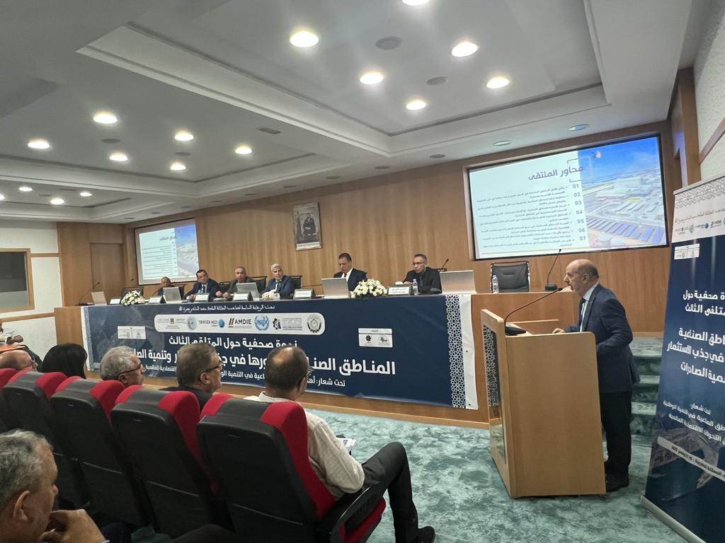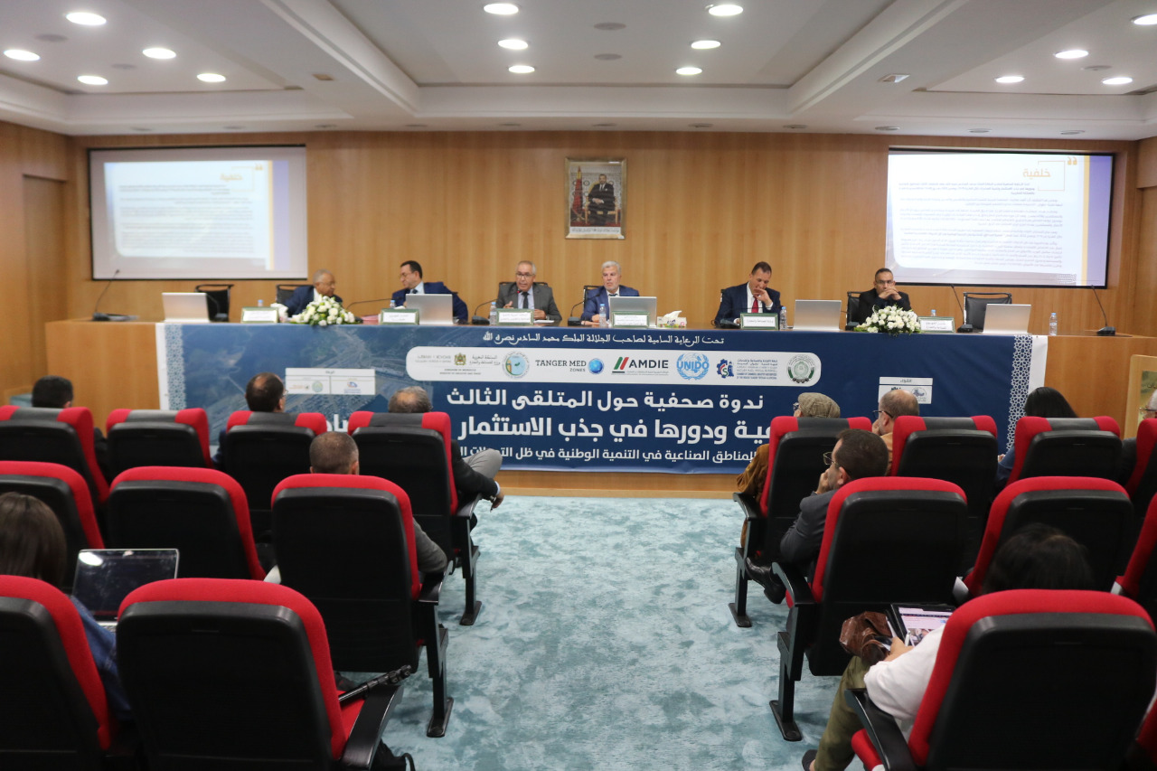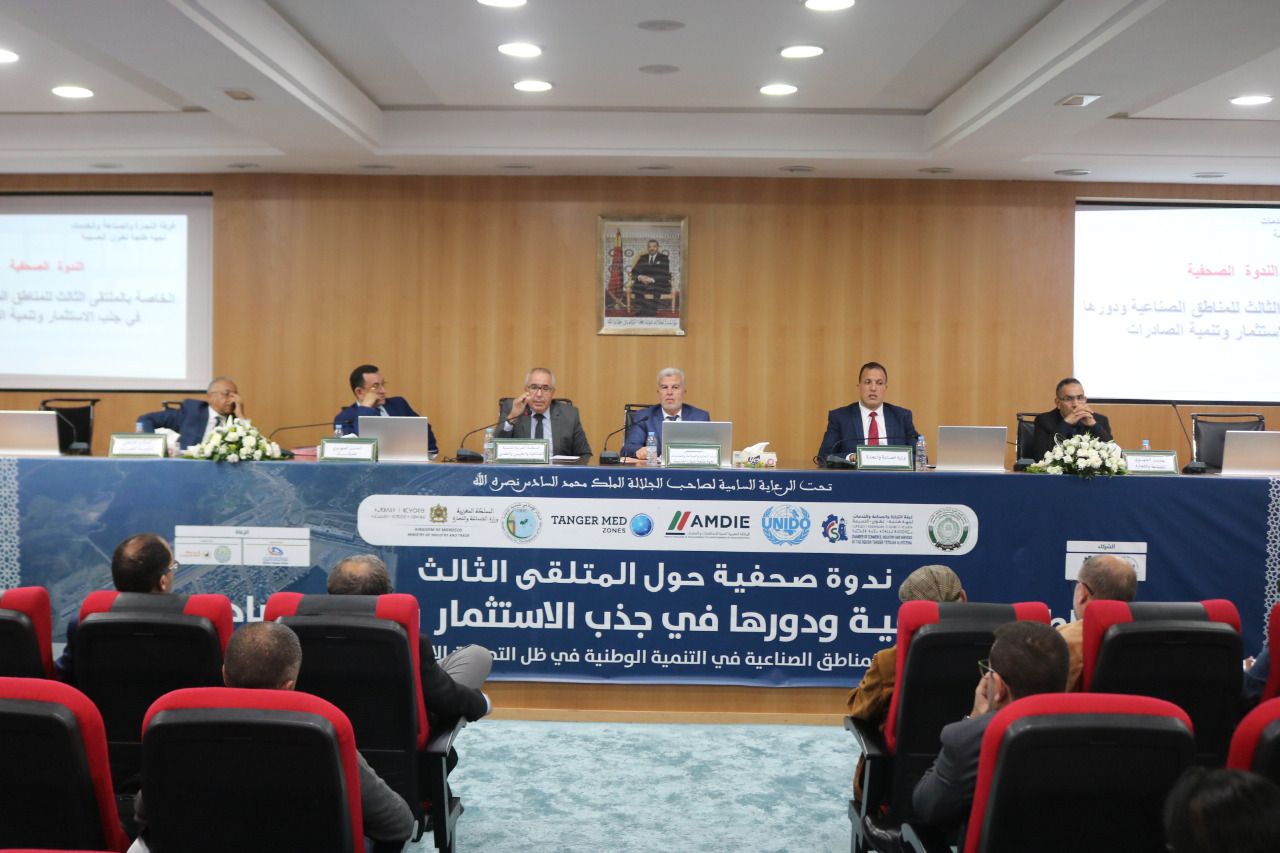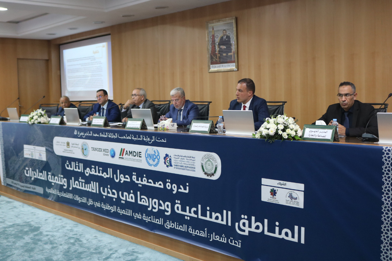 في اطار الاعداد لتنظيم الملتقى الثالث حول المناطق الصناعية ودورها في جذب الاستثمار وتنمية الصادرات والذي سيعقد تحت الرعاية السامية لصاحب الجلالة الملك محمد السادس نصره الله ،تحت شعار “أهمية المناطق الصناعية في التنمية الوطنية في ظل التحولات الاقتصادية العالمية ” خلال الفترة 15-17نونبر 2022، نظمت غرفة التجارة والصناعة والخدمات لجهة طنجة-تطوان-الحسيمة بشراكة مع المنظمة العربية للتنمية الصناعية والتقييس والتعدين و وزارة الصناعة والتجارة و الوكالة المغربية لتنمية الاستثمارات والصادرات، والمناطق الصناعية طنجة المتوسط والمركز الإسلامي لتنمية التجارة، ومنظمة الامم المتحدة للتنمية الصناعية، الندوة الصحفية الترويجية للملتقى، وذلك يوم الثلاثاء8 نونبر 2022 على الساعة الرابعة مساء( 16:00) بالمقر الجهوي للغرفة بطنجة بحضور مختلف المنابر الاعلامية والصحفية المحلية والجهوية والوطنية .