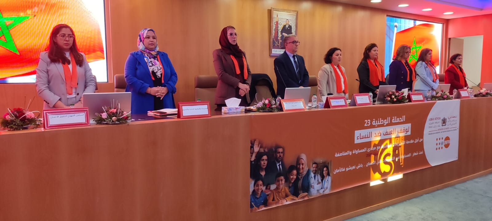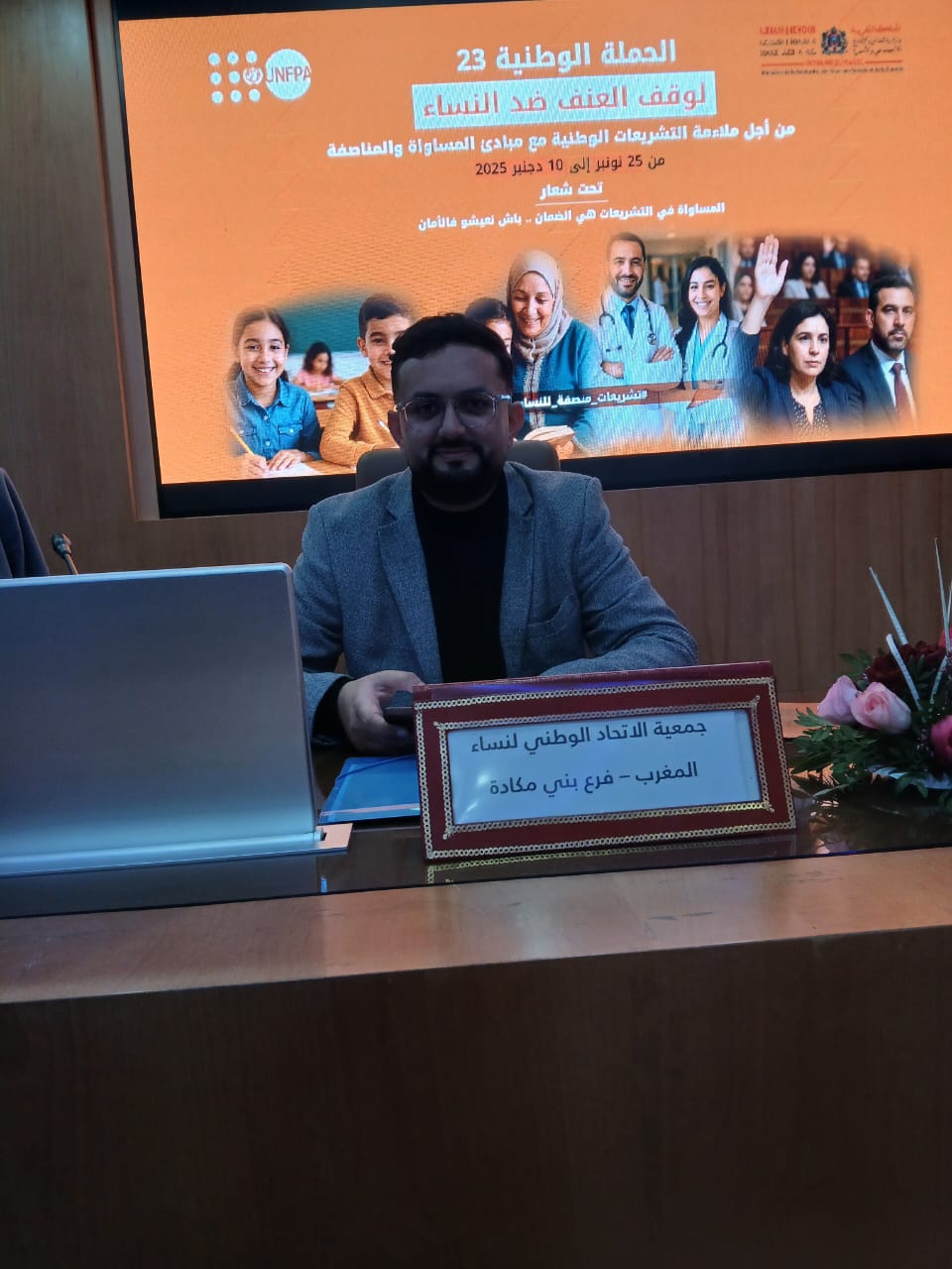 وقد مثل الغرفة السيدة حنان الطاهير رئيسة لجنة الشؤون المالية والميزانية بالغرفة وبحضور كل من السيدة نادية لبازي المنسقة الجهوية لوكالة التنمية الاجتماعية و السيد محمد البقالي ممثل السيد والي جهة طنجة-تطوان-الحسيمة والسيدة اكرام بنموسى ممثلة الوكيل العام للملك لدى محكمة الاستئناف والسيدة نعيمة بن زكري ممثلة المجلس الجهوي لجهة طنجة-تطوان-الحسيمة والسيدة سعاد الشنتوف رئيسة هيئة المساواة وتكافؤ الفرص والنوع الاجتماعي والسيدة مهدية الريسوني أستاذة القانون بالمدرسة الوطنية للتجارة والتسيير والسيدة فتيحة السعيدي الكاتبة العامة لجمعية اتحاد العمل النسائي والسيد عبد النور حجاج ممثل الاتحاد الوطني لنساء المغرب فرع بني مكادة والسيدة مريم الخطابي ممثلة المجلس الجهوي لحقوق الانسان والسيد بوشتى عبد الله عضو بالغرفة.