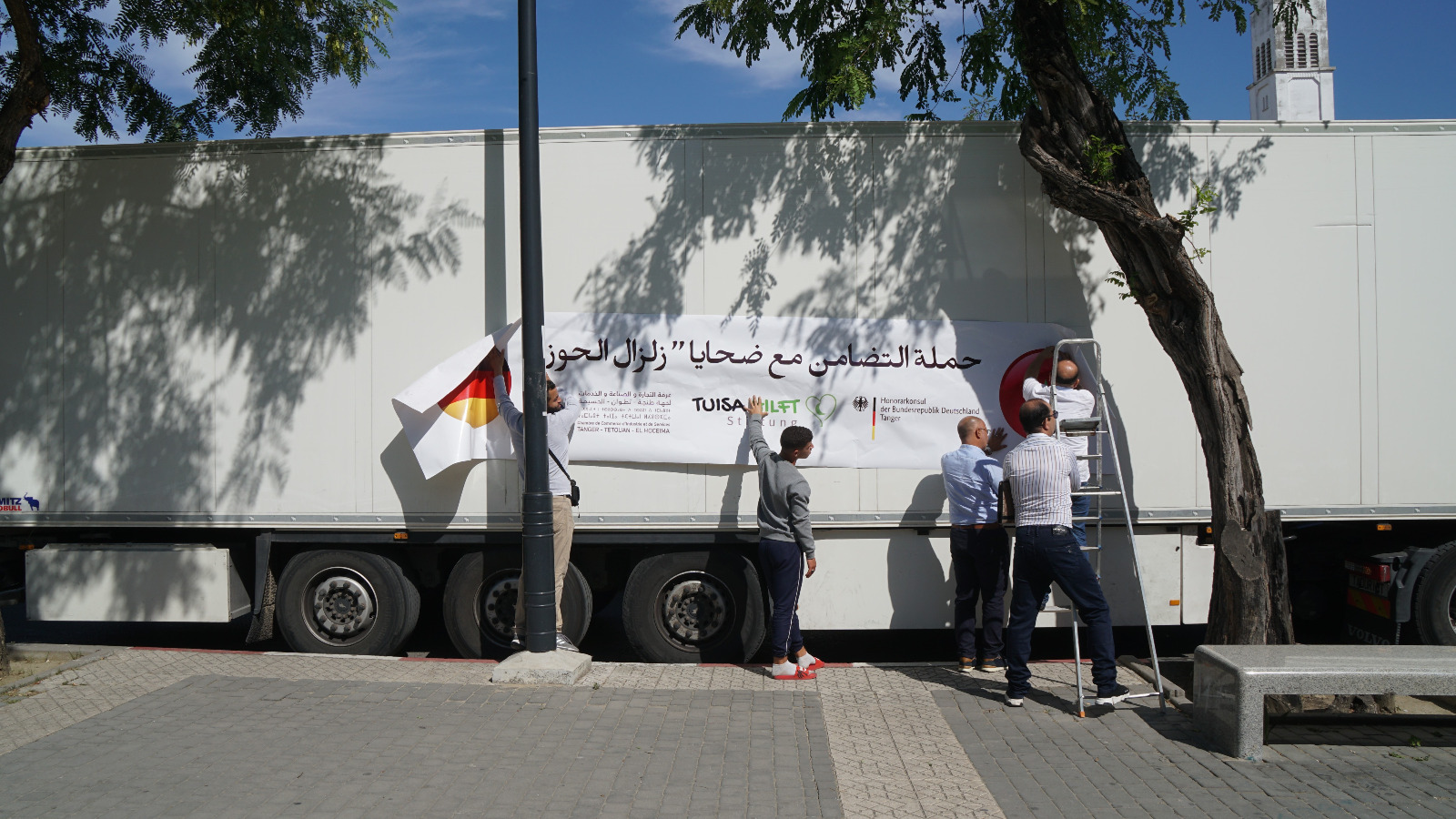 و بمبادرة من المؤسسة الخيرية الألمانية « Tuisa Hilft Stiftung » ، تم يوم الأربعاء11 أكتوبر 2023، توجيه شاحنة محملة بهبات لوجستية و طبية متعددة (خيام، ملابس، مواد صيدلية، أدوات و مواد التنظيف…) قادمة من ألمانيا لمساعدة ضحايا زلزال الحوز.