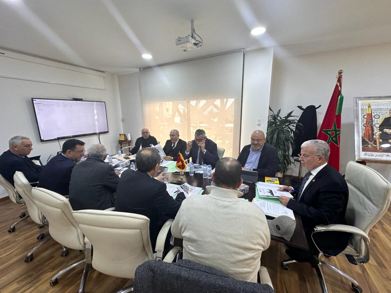 في إطار الاستعدادات الجارية، لعقد الجمعية العامة العادية الأولى (05 مارس 2024) لغرفة التجارة والصناعة والخدمات لجهة طنجة تطوان الحسيمة، برسم سنة 2024، اجتمع المكتب المسير للغرفة يوم الاثنين 04 مارس 2023 على الساعة الواحدة زوالا بمقر الغرفة بطنجة. حيث ترأسه السيد عبد اللطيف أفيلال، رئيس الغرفة وحضره كل من السادة أعضاء المكتب: الحسين بن الطيب؛ النائب الأول للرئيس، ومحمد سعيد أهروش؛ النائب الثاني للرئيس، وعبد الحميد الحسيسن؛ النائب الثالث للرئيس، وأنوار أربعي؛ النائب الرابع للرئيس، وعبد الحفيظ الشركي، أمين مال الغرفة، ومصطفى بناجي؛ مقرر الغرفة، وبدر الدين أوخيار؛ نائب المقرر.