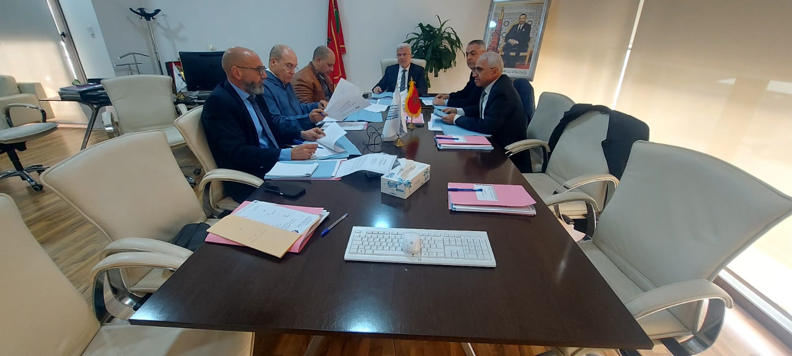 ترأس الاجتماع السيد عبد اللطيف أفيلال، رئيس الغرفة، بحضور السادة أعضاء المكتب، ويتعلق الأمر بـ: السيد محمد سعيد أهروش، النائب الثاني للرئيس، والسيد أنوار أربعي، النائب الرابع للرئيس، والسيد عبد الحفيظ الشركي، أمين مال الغرفة، والسيد مصطفى بناجي، مقرر الغرفة.