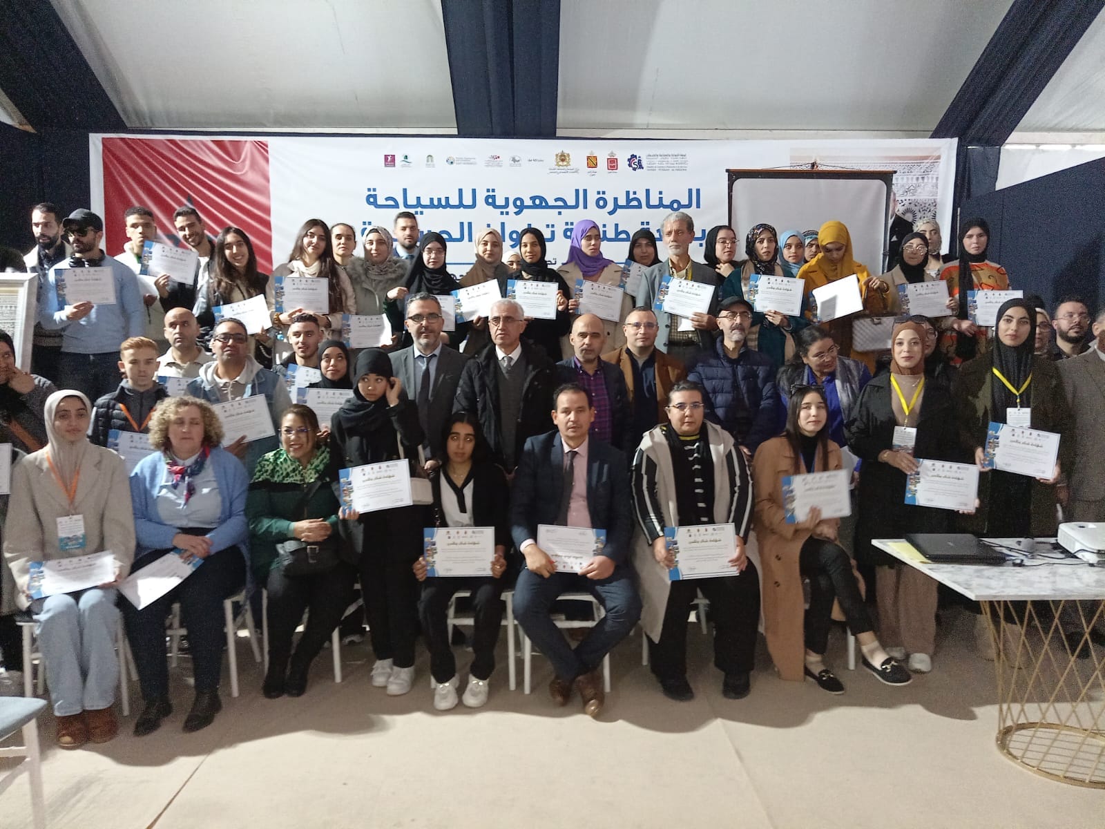 اختتم المعرض الجهوي السياحي المنظم على هامش المناظرة الجهوية للسياحة المنظمة من طرف غرفة التجارة دوالصناعة والخدمات لجهة طنجة-تطوان-الحسيمة ووزارة السياحة والصناعة التقليدية والاقتصاد الاجتماعي وباقي الشركاء من 04 إلى 07 دجنبر تحت شعار “من أجل اقلاع سياحي قوي، منتظم، ذكي ومستدام”، يوم السبت 07 دجنبر 2024. شكل المعرض نافذة مهمة لإبراز المؤهلات السياحية للجهة وأداة للتواصل والتفاعل بين المؤسسات والشركات والجمعيات العاملة في القطاع السياحي ومجال التسويق الرقمي والتنمية المستدامة ومكن العارضين من تعزيز علاقاتهم التجارية والثقافية. وعرف اليوم الختامي تنظيم اخر سلسلة في الورشات التكوينية التي تضمنت محورين أساسيين: محور السياحة والرقمنة ومحور السياحة والتشغيل حول المواضيع التالية: