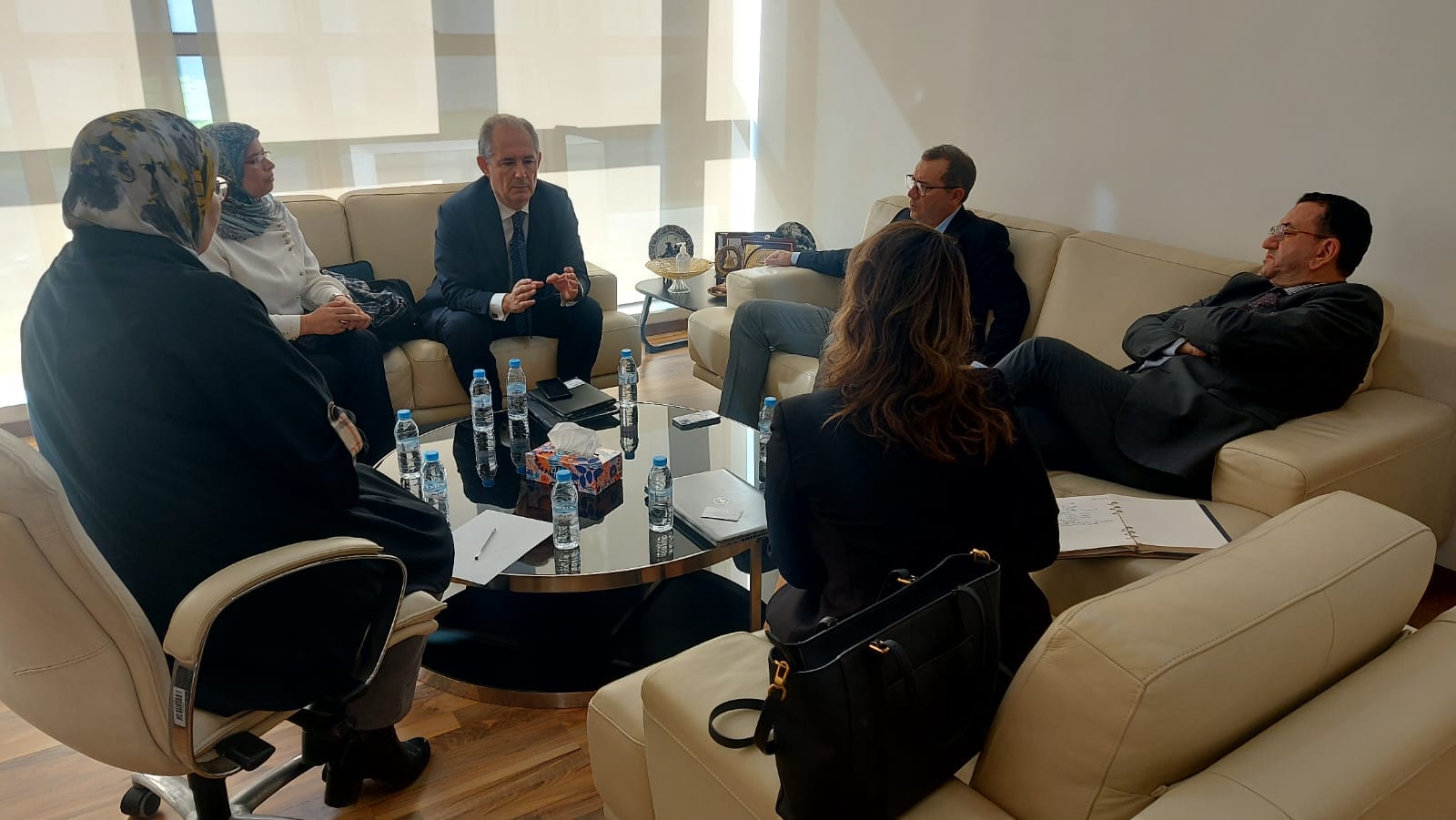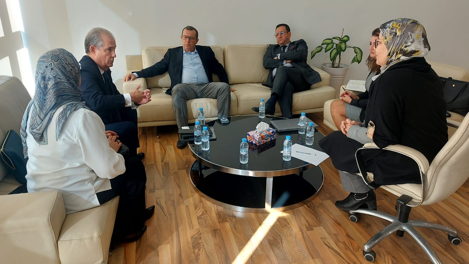 حضر اللقاء إلى جانبهم كل من السيد فؤاد أحلوش الكريستي المدير الجهوي للغرفة والسيدة حورية البزراتي ، رئيسة قسم خدمات المنتسبين والسيدة نصيرة الحراق عن المركز الجهوي للاستثمار.