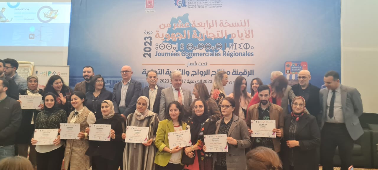 في إطار الدعم و المواكبة الذي تقوم به غرفة التجارة و الصناعة والخدمات لجهة طنجة تطوان الحسيمة لفائدة حاملي المشاريع من النساء و الشباب، و في سياق تطوير علاقات التعاون و الشراكة مع الجمعيات المؤطرة للنساء والشباب، وفي اطار النسخة 14 للايام التجارية، انعقد يوم الاثنين 13 مارس 2023 على الساعة الخامسة بعد الزوال بملحقة الغرفة، فعاليات حفل اختتام الدورة التدريبية لمشروع: ” فرص تنمية إدارة الأعمال والتشغيل للتخفيف من آثار كوفيد 19 في المغرب من منظور النوع الاجتماعي وحقوق الانسان” الممول من طرف الوكالة الإسبانية للتعاون الدولي AECID بشراكة مع جمعية CODENAV .