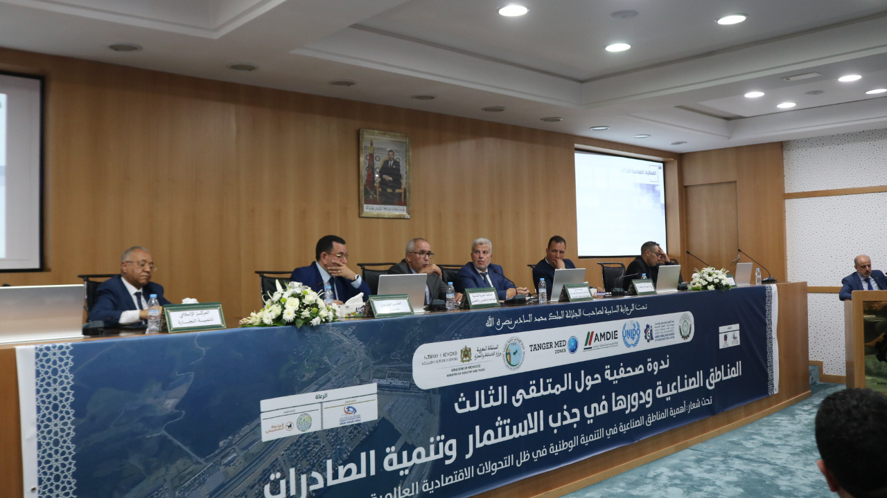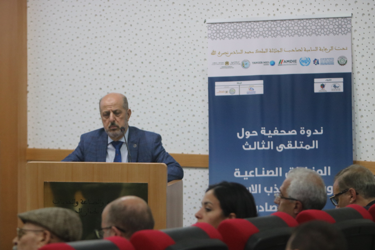 في اطار الاعداد لتنظيم الملتقى الثالث حول المناطق الصناعية ودورها في جذب الاستثمار وتنمية الصادرات والذي سيعقد تحت الرعاية السامية لصاحب الجلالة الملك محمد السادس نصره الله ،تحت شعار “أهمية المناطق الصناعية في التنمية الوطنية في ظل التحولات الاقتصادية العالمية ” خلال الفترة 15-17نونبر 2022، نظمت غرفة التجارة والصناعة والخدمات لجهة طنجة-تطوان-الحسيمة بشراكة مع المنظمة العربية للتنمية الصناعية والتقييس والتعدين و وزارة الصناعة والتجارة و الوكالة المغربية لتنمية الاستثمارات والصادرات، والمناطق الصناعية طنجة المتوسط والمركز الإسلامي لتنمية التجارة، ومنظمة الامم المتحدة للتنمية الصناعية، الندوة الصحفية الترويجية للملتقى، وذلك يوم الثلاثاء8 نونبر 2022 على الساعة الرابعة مساء( 16:00) بالمقر الجهوي للغرفة بطنجة بحضور مختلف المنابر الاعلامية والصحفية المحلية والجهوية والوطنية .