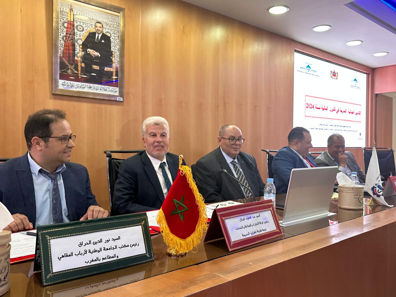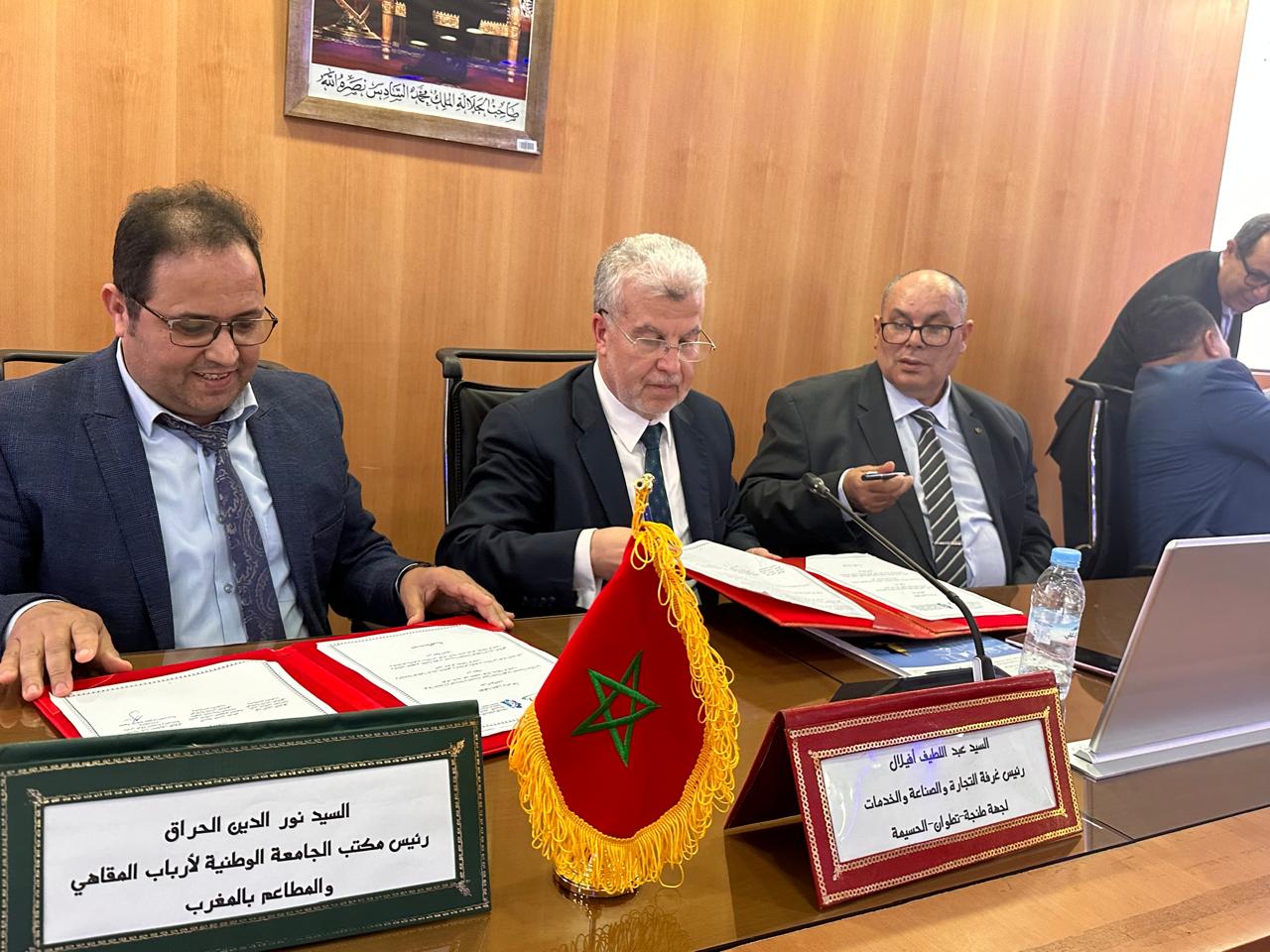 كما تطرق السيد فؤاد أحلوش؛ المدير الجهوي للغرفة إلى مضمون الاتفاقية التي سوف تجمع مؤسسة الغرفة بالجمعية الوطنية لأرباب المقاهي والمطاعم بالمغرب، والتي تهم بالأساس مواكبة قطاع المقاهي والمطاعم بجهة طنجة-تطوان-الحسيمة عبر تقديم الدعم والمساعدة والمشورة والاستفادة من الخصم الضريبي (تخفيض 15 بالمائة) الذي يقدمه المركز الاستشاري لتدبير المحاسبة المعتمدة التابع لغرفة التجارة والصناعة والخدمات لجهة طنجة تطوان الحسيمة، وعموما تهدف هذه الاتفاقية الى مواكبة هاته الفئة المنتمية لمؤسسة الغرفة والترافع حول مطالبها ومواكبة قضاياها، خاصة مع الأدوار الحيوية التي تقوم بها والتي تزداد أهميتها مع انكباب المملكة المغربية على تنظيم تظاهرات كبرى خلال السنوات القادمة.