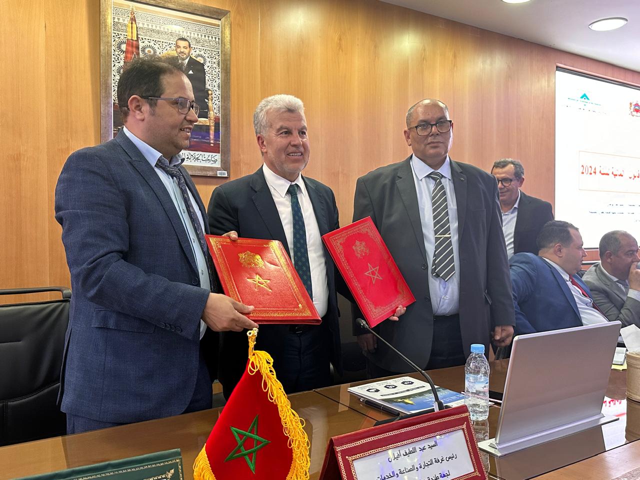 بمناسبة تنظيم غرفة التجارة والصناعة والخدمات لجهة طنجة تطوان الحسيمة، فعالية “اليوم الدراسي حول المستجدات الضريبية الواردة في قانون المالية لسنة 2024” وذلك يوم الاربعاء 24 أبريل 2024 بمقرها الجهوي، وعلى هامش أشغال هذا اليوم الذي ترأسه السيد عبد اللطيف أفيلال؛ رئيس الغرفة ، تم التوقيع “بروتوكوليا” على اتفاقيتين للشراكة والتعاون، وتتعلق الأولى بتحسين مناخ ريادة الاعمال بالجهة مع الوكالة الوطنية لإنعاش التشغيل والكفاءات بالجهة، وقعها من جانب الغرفة السيد الرئيس عبد اللطيف أفيلال، وعن الوكالة الوطنية لإنعاش التشغيل والكفاءات بجهة طنجة تطوان الحسيمة وقعتها السيدة المديرة الجهوية فاطمة الزهراء أوعمار. أما الاتفاقية الثانية فهمت تطوير ريادة الاعمال والتكوين والمواكبة مع الجامعة الوطنية لأرباب المقاهي والمطاعم بالمغرب، والتي وقعها السيد رئيس الغرفة عبد اللطيف أفيلال من جهة، وعن والجامعة الوطنية لأرباب المقاهي والمطاعم بالمغرب، وقعها السيد نور الدين الحراق بصفته رئيسا، والسيد حسن جرجور بصفته رئيسا جهويا للجمعية. وفي معرض تقديمهما شرح السيد فؤاد أحلوش؛ المدير الجهوي للغرفة مضمونهما العام، حيث تنصب الأولى على مجموعة من البرامج والمشاريع المتعلقة أساسا بـــــ: