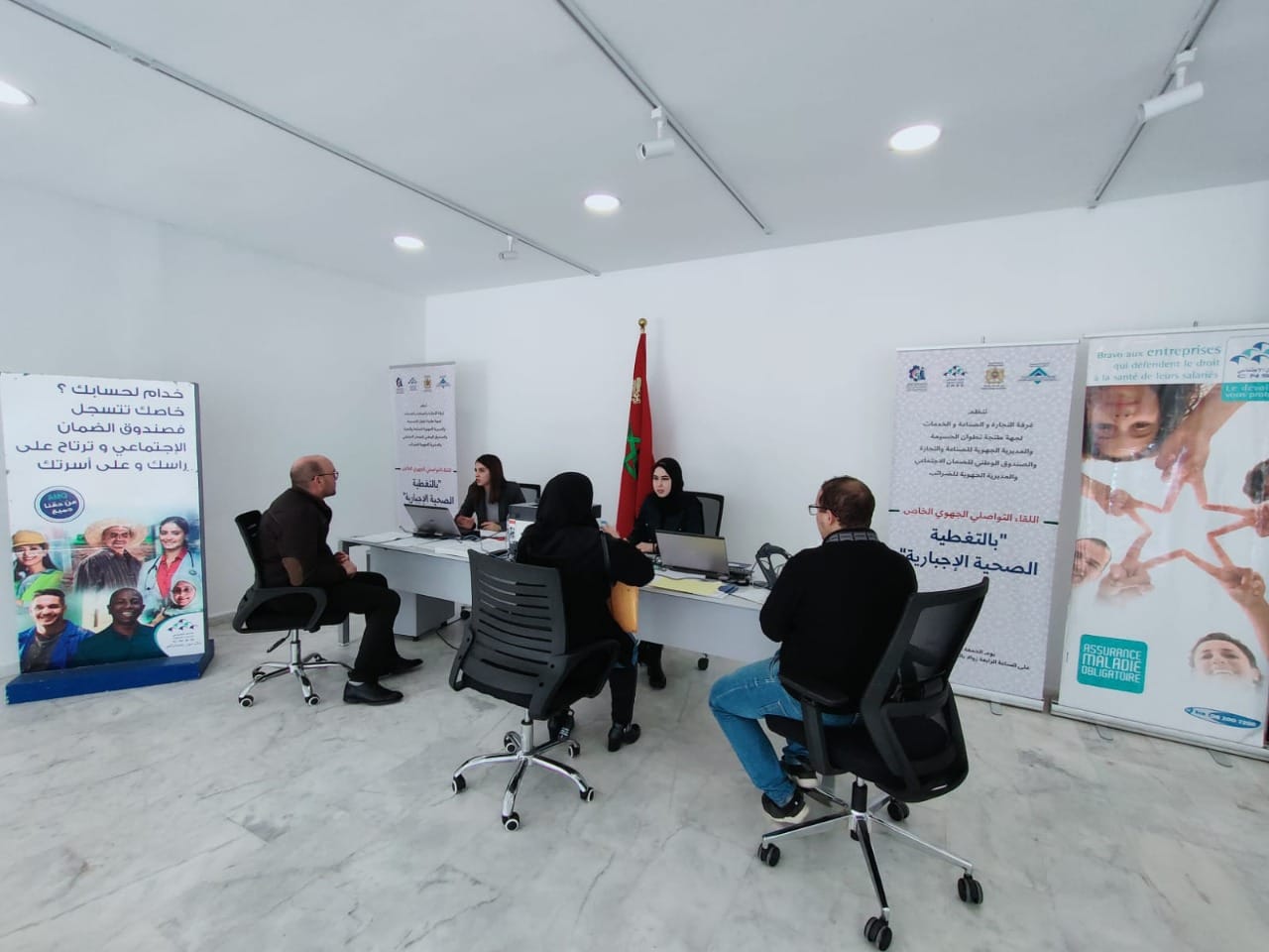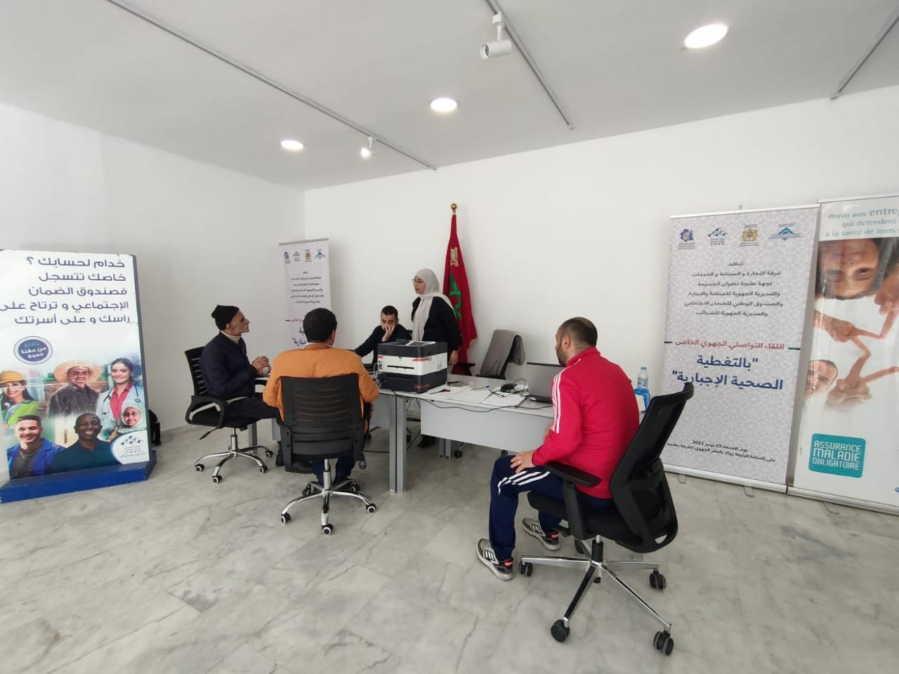 في إطار تفعيل الورش الملكي القاضي بتعميم التغطية الصحية والاجتماعية لفائدة التجار والمهنيين ومقدمي الخدمات المستقلين الخاضعين لنظام المساهمة المهنية الموحدة ولنظام المقاول الذاتي ولنظام المحاسبة، حلت أيام 28 و 29 و 30 نونبر2022 بالمقر المركزي للغرفة القافلة التحسيسية الجهوية الخاصة بالتغطية الصحية الموجهة لمهنيي الجهة و ذلك وفق الاتفاقية المبرمة مع المديرية الجهوية للصندوق الوطني للضمان الاجتماعي.