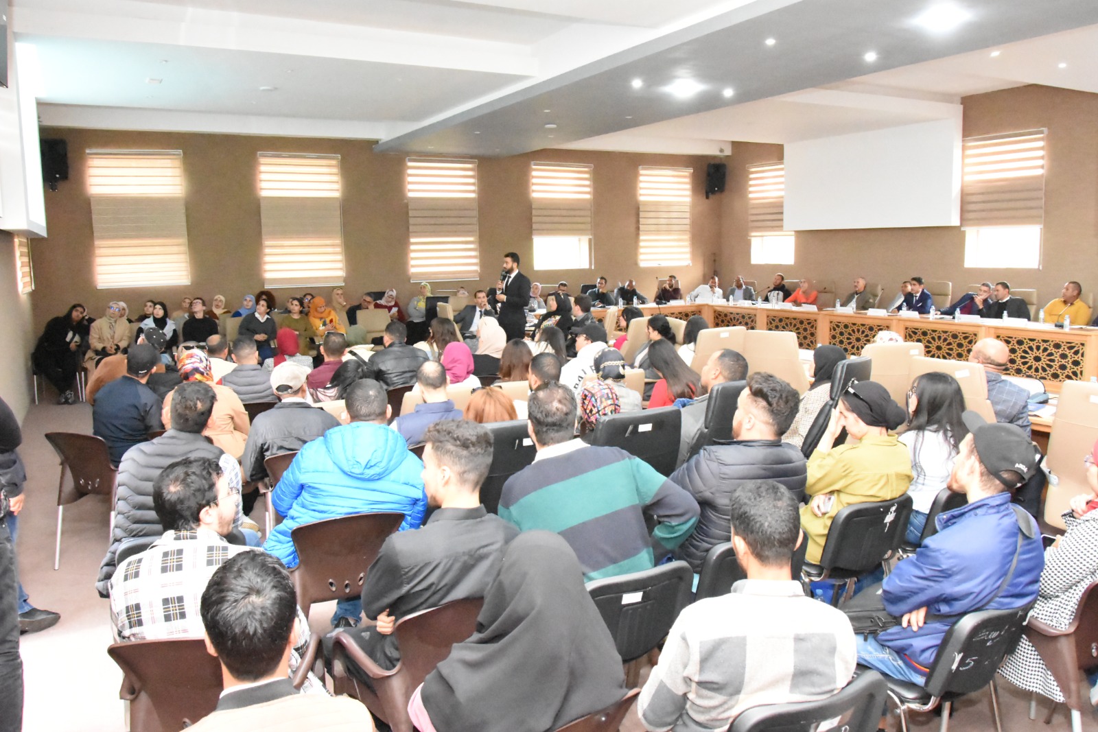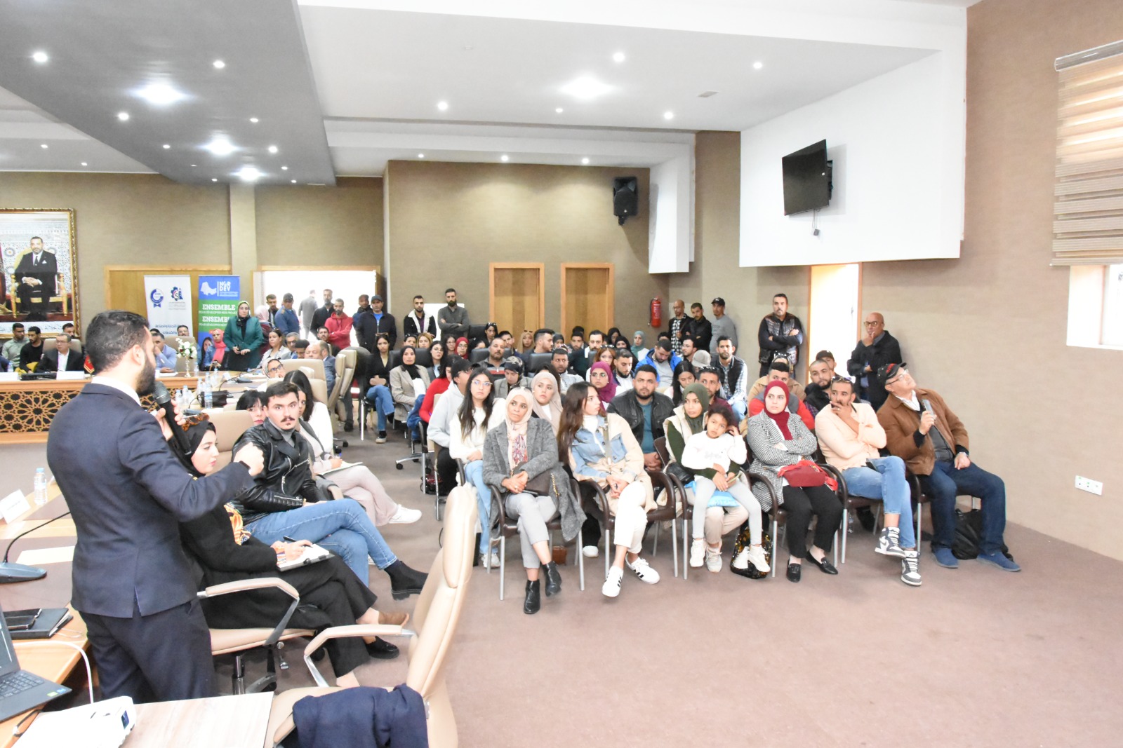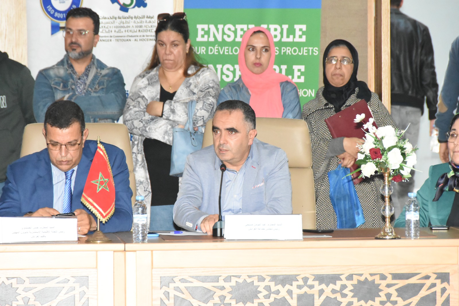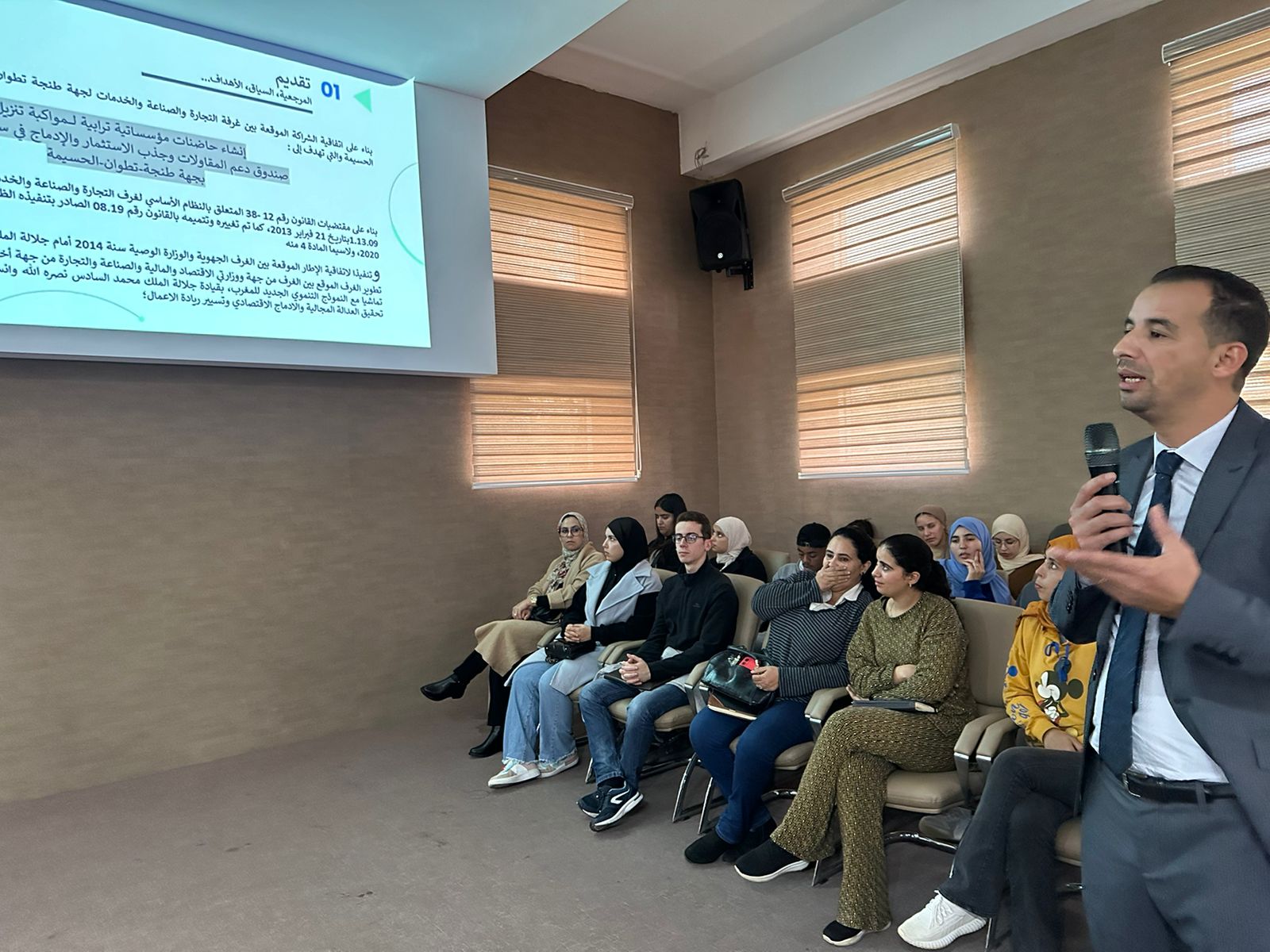 حيث عرف اللقاء التحسيسي حضور كل من السيد عبد الحميد الحسيسن نائب رئيس الغرفة إضافة الى السادة أعضاء الغرفة بإقليم العرائش، السيد حسن الحسناوي رئيس اللجنةالاستشارية الاقليمية لشؤون المهنيين بالعرائش والسادة : سمير الكموني وحسن المودن وعزيز بن مصباح ومحمد بن حمو ومحمد العدوي، والسيد المدير الجهوي لغرفة التجارة والصناعة والخدمات لجهة طنجة تطوان الحسيمة وموظفي الغرفة بالعرائش،هذا وقد عرف اللقاء التحسيسي حضورا للسيد ممثل مجلس إقليم العرائش والسيد النائب الأول لرئيس مجلس جماعة العرائش ،كما عرف اللقاء حضور رئيسي جماعتي زعرورة وجماعة عياشة بإقليم العرائش والسيد نائب عميد الكلية المتعددة التخصصات بالعرائش، والسيد المدير الإقليمي الوكالة الوطنية لانعاش التشغيل والكفاءات /انابيك/ والسيد مدير مكتب التكوين المهني بالعرائش والقصر الكبير والسيد مدير معهد البحث العلمي والابتكار إضافة الى السيد رئيس القسم الاجتماعي والاقتصادي بعمالة إقليم العرائش، ورئيس جماعة أولاد اوشيح ورئيس جماعة ريصانة الجنوبية كما عرف اللقاء التحسيسي حضورا للسادة ممثلي المصالح الخارجية والمؤسسات المعنية بمواكبة حاملي المشاريع بإقليم العرائش.والسادة أطر الغرفة: محمد يجو، عبد الرحيم أشرقي، البشير داداح، فاطمة اعجيول.