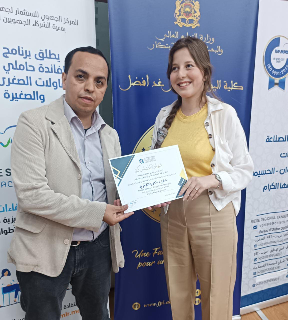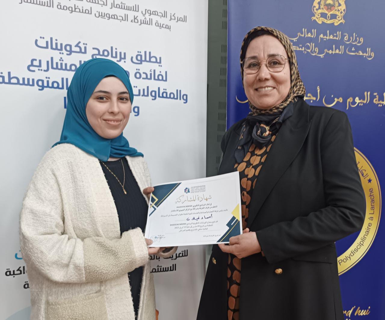 وفي ختام اللقاء تم توزيع شواهد المشاركة والتميز على المستفيدين من البرنامج التكويني، حيث عرف استفادة ازيد من 80 شاب وشابة من حاملي المشاريع بإقليم العرائش، من ضمن 600 مستفيد على مستوى جهة طنجة تطوان الحسيمة. وقد أجمعت كل الكلمات التي عرفها هذا اللقاء، على النجاح الباهر لهذه الدورة التكوينية، وبالكلمات المؤثرة للسيدات والسادة المكرمين والمشاركين.