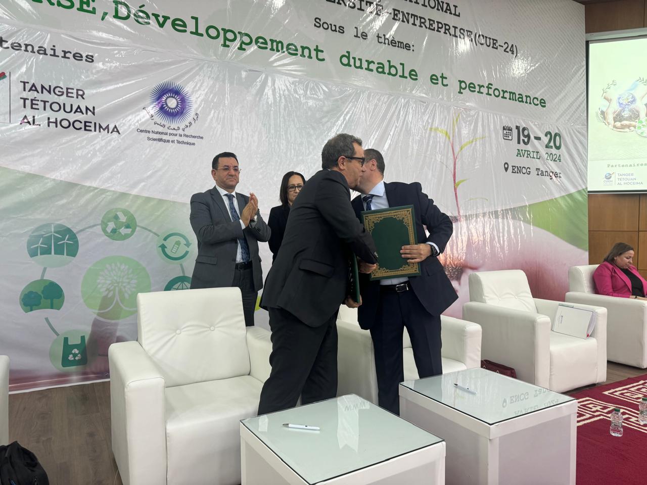 وقد تميز اليوم الأول لهذا الملتقى بالتوقيع البروتوكولي على اتفاقية الشراكة والتعاون التي تجمع بين مؤسسة غرفة التجارة والصناعة والخدمات لجهة طنجة تطوان الحسيمة؛ من جهة، والمدرسة الوطنية للتجارة والتسيير بطنجة؛ من جهة ثانية. والتي صادق عليها الجمعية العامة العادية الأولى برسم سنة 2024 بتاريخ 05 مارس 2024. وقع الاتفاقية من جانب الغرفة وبتفويض من الرئيس، نائبه السيد عبد الحميد الحسيسن، وعن المدرسة الوطنية للتجارة والتسيير بطنجة؛ مديرها السيد أحمد مغني. كما عرف هذا اليوم من الملتقى توزيع جوائز عن مسابقة “المشروع الأخضر” الذي تم برمجته.
