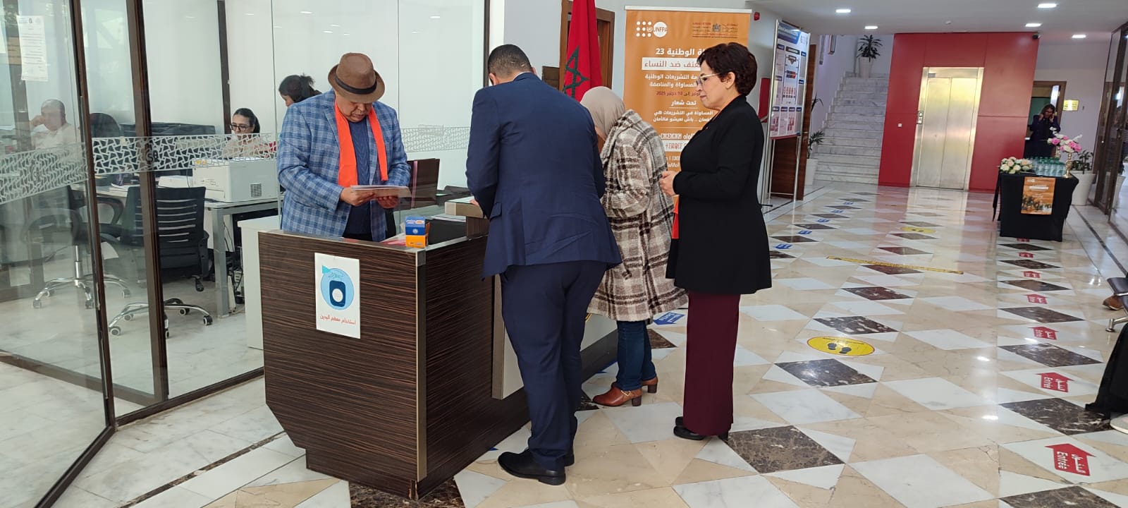 وقد مثل الغرفة السيدة حنان الطاهير رئيسة لجنة الشؤون المالية والميزانية بالغرفة وبحضور كل من السيدة نادية لبازي المنسقة الجهوية لوكالة التنمية الاجتماعية و السيد محمد البقالي ممثل السيد والي جهة طنجة-تطوان-الحسيمة والسيدة اكرام بنموسى ممثلة الوكيل العام للملك لدى محكمة الاستئناف والسيدة نعيمة بن زكري ممثلة المجلس الجهوي لجهة طنجة-تطوان-الحسيمة والسيدة سعاد الشنتوف رئيسة هيئة المساواة وتكافؤ الفرص والنوع الاجتماعي والسيدة مهدية الريسوني أستاذة القانون بالمدرسة الوطنية للتجارة والتسيير والسيدة فتيحة السعيدي الكاتبة العامة لجمعية اتحاد العمل النسائي والسيد عبد النور حجاج ممثل الاتحاد الوطني لنساء المغرب فرع بني مكادة والسيدة مريم الخطابي ممثلة المجلس الجهوي لحقوق الانسان والسيد بوشتى عبد الله عضو بالغرفة.