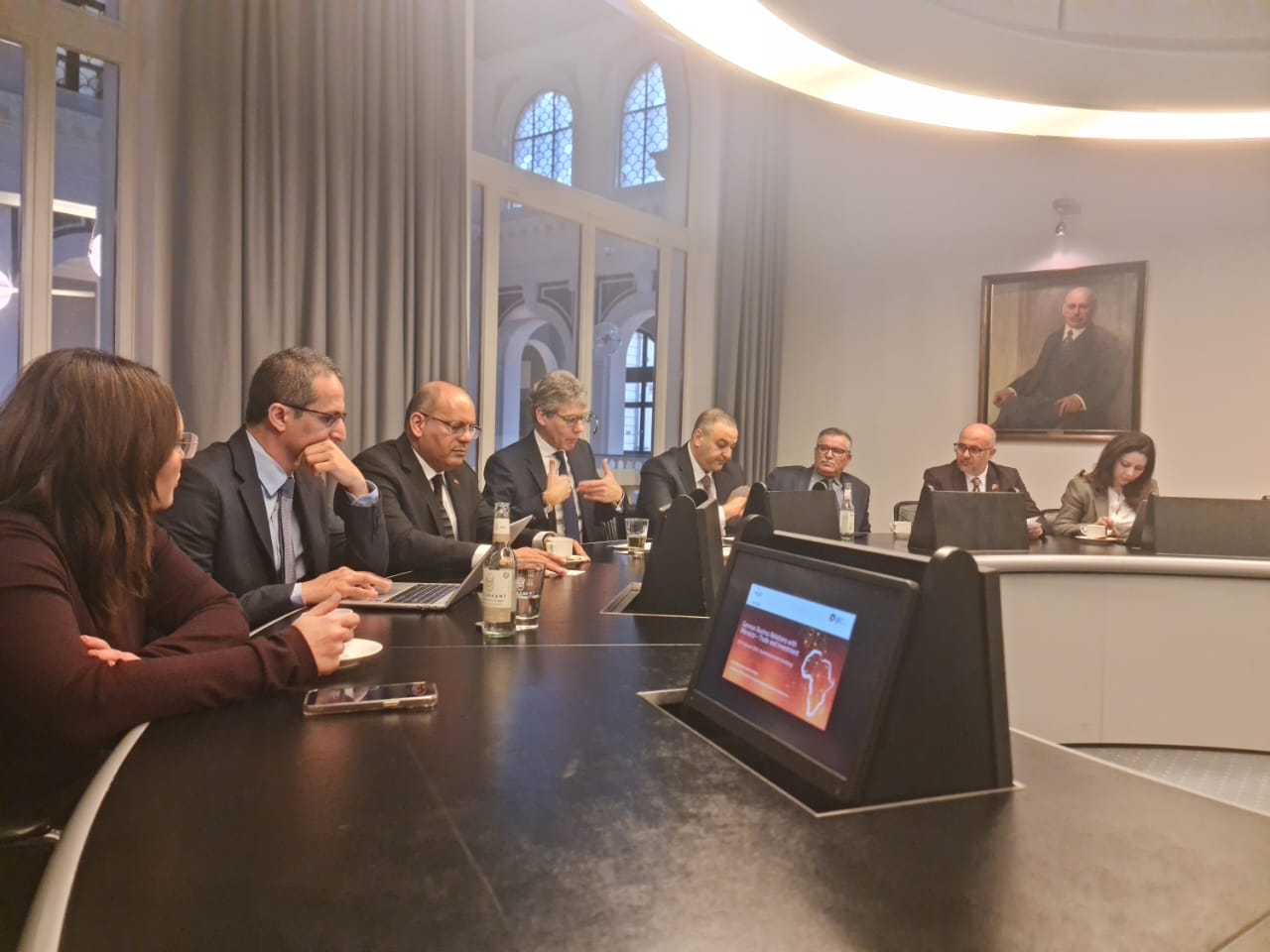 و بعد جولة مقتضبة في أروقة و مرافق غرفة هامبورغ التي تعد أقدم غرفة بألمانيا، تم عقد مائدة مستديرة ترأسها السيد Tom Pause مسؤول المنطقة الإفريقية بغرفة هامبورغ بحضور مسؤول من وزارة الاقتصاد و مدير العمليات بميناء هامبورغ و بعض المؤسسات و الشركات الألمانية المهتمة بالاستثمار في المغرب و بجهة طنجة تطوان الحسيمة على وجه الخصوص.