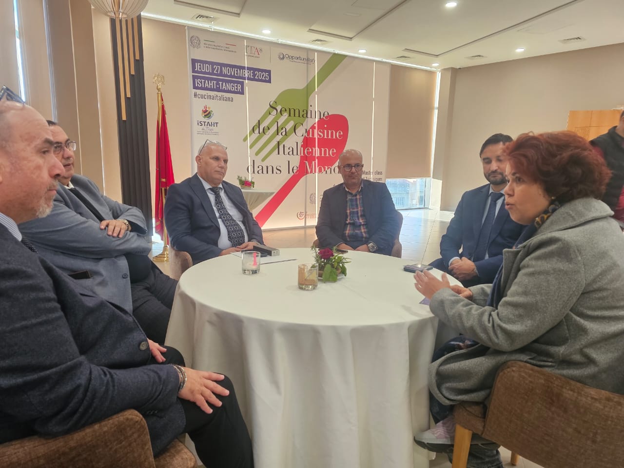 من جهته اكد نائب رئيس الغرفة الجهوية السيد محمد سعيد اهروش على اهمية تبادل الخبرات بين المغرب و إيطاليا في مجالات التكوين و الإدماج المهني من خلال المهن المرتبطة بالفندقة و المطاعم و قطاع السياحة بشكل عام.