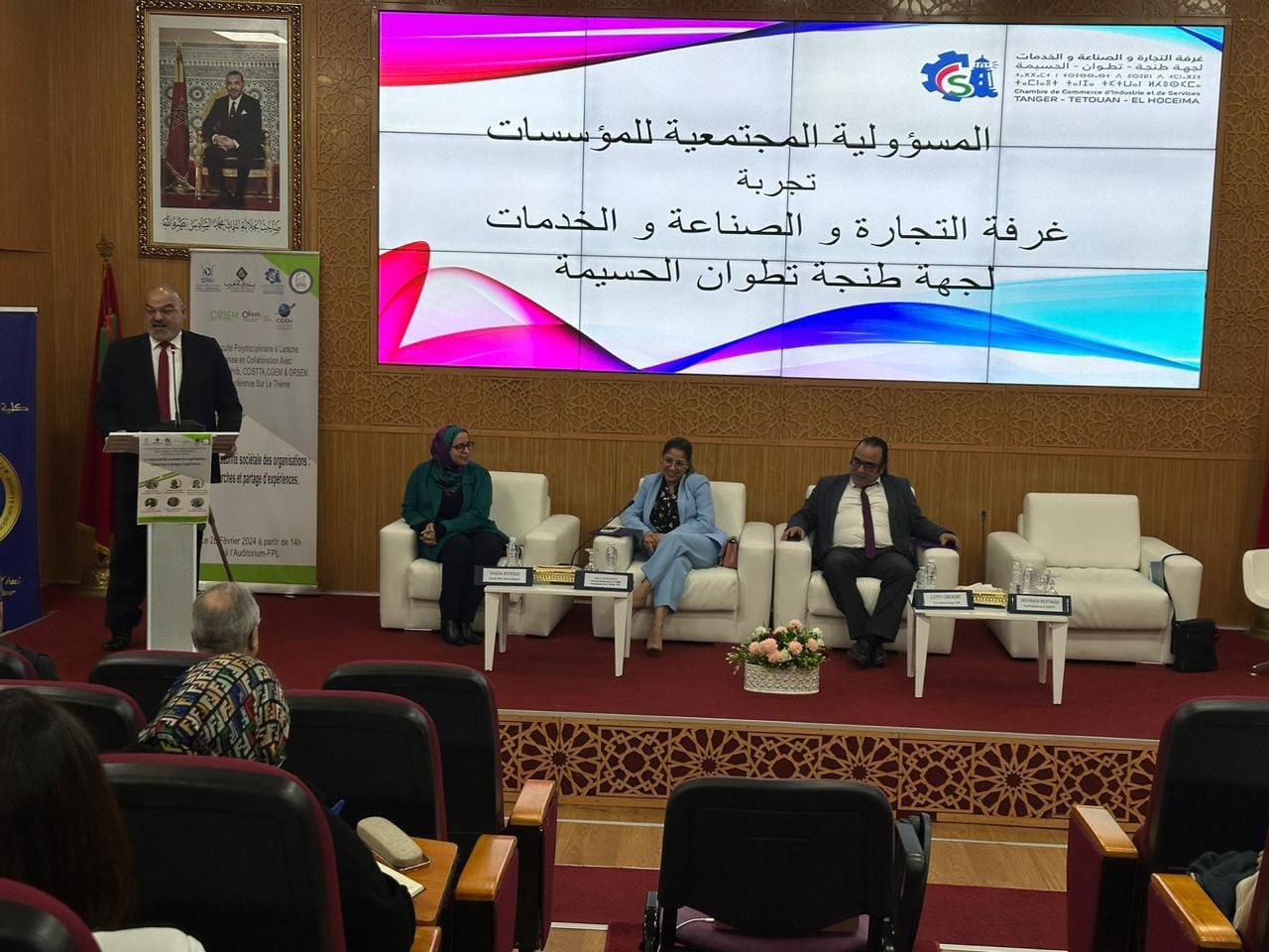 و في معرض كلمته تطرق السيد الحسين بن الطيب إلى الطبيعة التمثيلية للنسيج الاقتصادي التي منحها المشرع للغرف التجارية و تمتعها بصفة المرفق العمومي، مما اهل المؤسسة إلى لعب دور مهم تجاه منتسبيها و المجتمع عموما عبر عدة مشاريع و برامج تهم التكوين و احتضان المقاولات الناشئة و العمل الإنساني و حماية البيئة و الاهتمام بالرأسمال البشري العامل بها، و ذلك عبر العديد من الأنشطة و المشاريع و الخدمات مما يجعل غرفة التجارة و الصناعة و الخدمات لجهة طنجة تطوان الحسيمة من المؤسسات العمومية الرائدة في مجال تنزيل مفاهيم المسؤولية المجتمعية و البيئية.