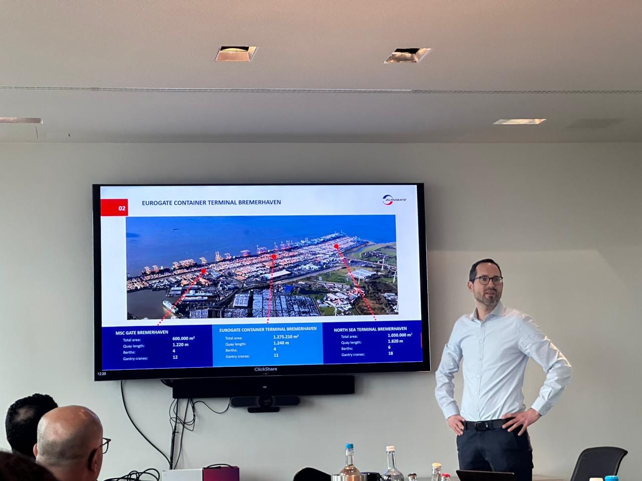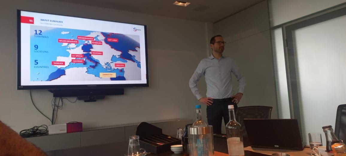 المحطة الثانية من الزيارة، كانت ميناء مدينة بريمهافن حيث تم استقبال الوفد من طرف مدير شركة EUROGATE حيث قدم عرضا حول الخدمات المقدمة من طرف شركته للمتعاملين مع الميناء، ثم تم القيام بزيارة ميدانية لمختلف مرافق الميناء.