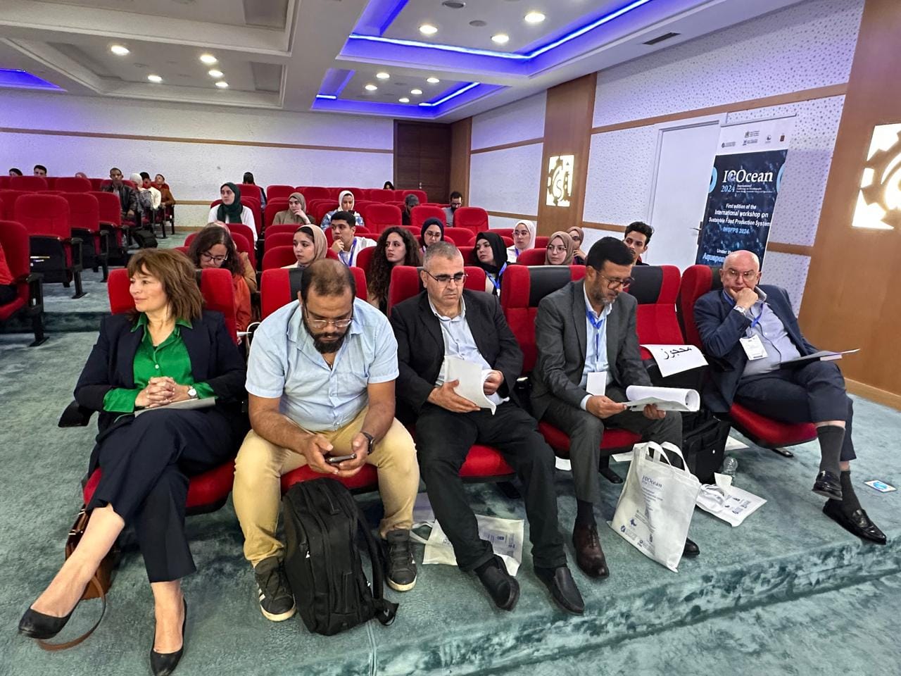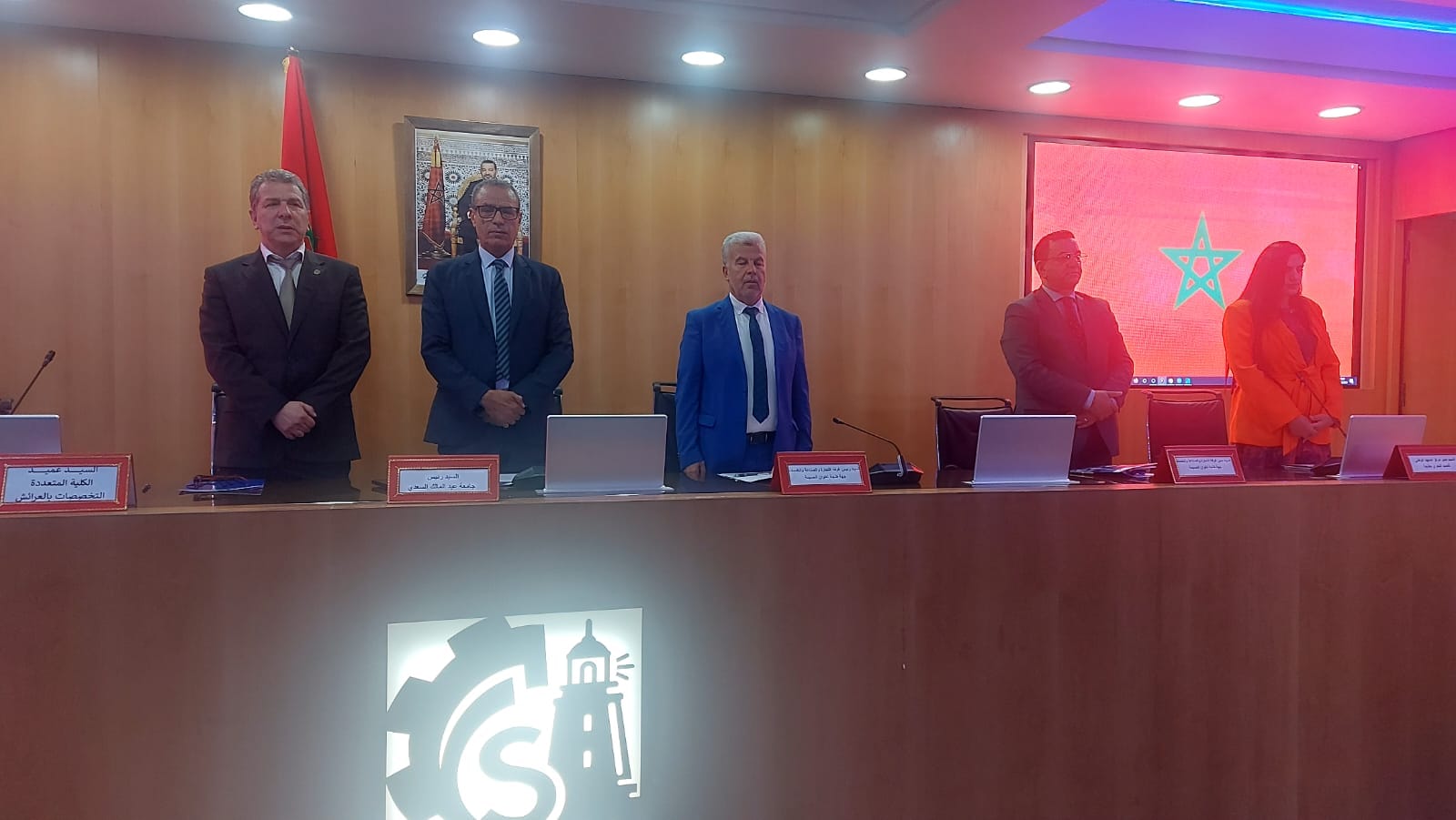 وقد ترأس اللقاء السيد عبد اللطيف افيلال رئيس غرفة التجارة والصناعة والخدمات لجهة طنجة تطوان الحسيمة مرفوقا بالسيد عبد الحميد احسيسن نائب رئيس الغرفة والسيد بوشتى المومني رئيس جامعة عبد المالك السعدي والسيد فؤاد احلوش الكريستي المدير الجهوي للغرفة والسيد محسن بناني امشيطة عميد الكلية متعددة التخصصات بالعرائش والسيدة ممثلة مركز المعهد الوطني للصيد البحري بطنجة والسيدة مريم البقالي أستاذة التعليم العالي بالكلية المتعددة التخصصات بالعرائش والسيد سعيد شفيق مسؤول عن مشروع ريبوت المتوسطي . من الجانب الإداري للغرفة السيدة ندى ايجوك رئيسة مصلحة التكوين و السيدة مريم الزكاف اطار بقسم الدعم والترويج إضافة الى طلبة جامعة عبد المالك السعدي إضافة الى نخبة من الأساتذة الجامعيين.