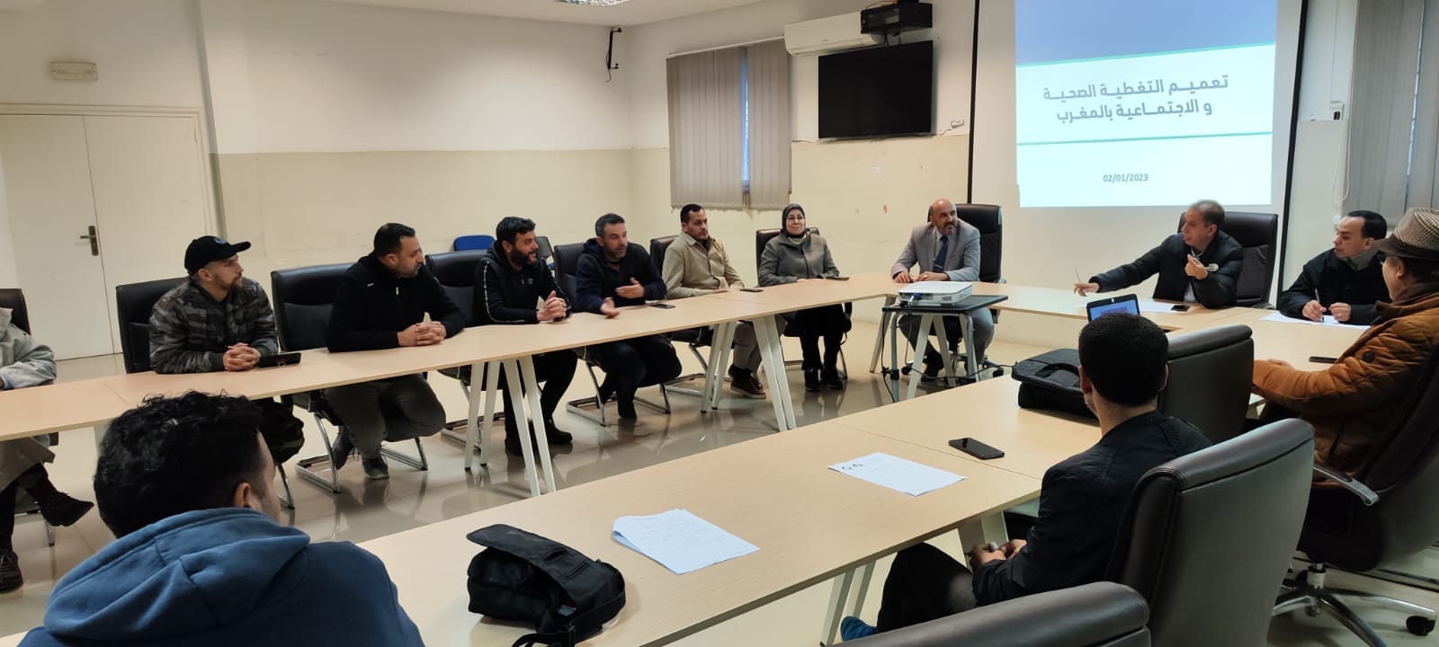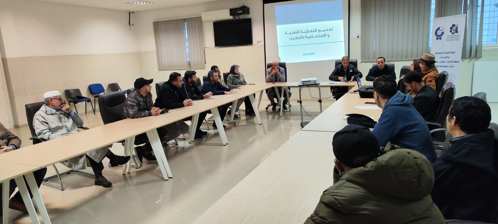 في اطار مواكبة غرفة التجارة والصناعة والخدمات لجهة طنجة تطوان الحسيمة لمنتسبيها من المهنيين وتحسيسهم بالمستجدات القانونية ، وسعيا منها الى انجاح ورش تعميم الحماية الاجتماعية . تم تنظيم ، يوم الاثنين 02 يناير 2023 بمدينة العرائش ، ورشة تحسيسية حول موضوع ” التغطية الصحية الاجبارية الاساسية عن المرض” بشراكة مع المديرية الجهوية للصندوق الوطني للضمان الاجتماعي . ترأس هذا اللقاء السيد سمير الكموني عضو الغرفة .وقام بتنشيطه كل من السيد احمد دادسي رئيس وكالة الصندوق الوطني للضمان الاجتماعي بالعرائش والسيدة هاجر لمشرق ، مكلفة بالزبناء بالوكالة نفسها. وحضره السيدان عزيز بن مصباح ومحمد بن حمو عضوا الغرفة بالعرائش والسيدة فاطمة اعجيول ،مسؤولة فرعية الغرفة بالعرائس وأطرها ومجموعة من التجار وممثلي الجمعيات المهنية بالعرائش . وقد تميزت هذه الورشة التكوينية التي تندرج في اطار برنامج فعاليات الايام التجارية موازاة مع فضاء العرض والتسوق المتواصلة الى غاية يوم الاربعاء 04 يناير 2023 ، بتقديم السيد احمد دادسي عرضا مفصلا حول مختلف جوانب مشروع الحماية الاجتماعية وخاصة نظام التأمين الاساسي الاجباري عن المرض لفائدة المهنيين . كما تخلل هذا اللقاء كلمات تثمينية لهذا المشروع الهام تقدم بهاالسادة اعضاء الغرفة بالعرائش مع التأكيد على أهمية التغطية الصحية بالنسبة للمهنيين وحث المستفيدين الحاضرين على الانخراط في هذا الورش الاجتماعي تنفيذا للاستراتيجية الوطنية للحماية الاجتماعية التي تبناها جلالة الملك محمد السادس نصره الله.