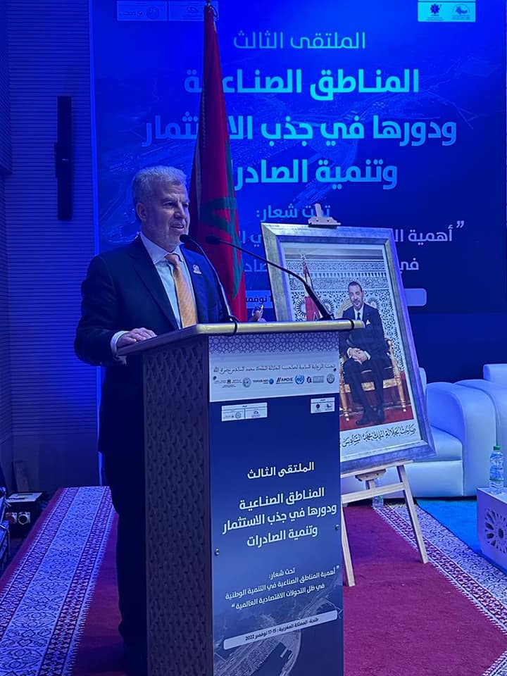 في جو بهيج من الفرحة والسرور جرت عشية يوم الاربعاء 16 نونبر 2022 فعاليات الجلسة الختامية للملتقى الثالث حول المناطق الصناعية ودورها في جذب الاستثمار وتنمية الصادرات. التي عقدت بفندق روايال توليب بطنجة.