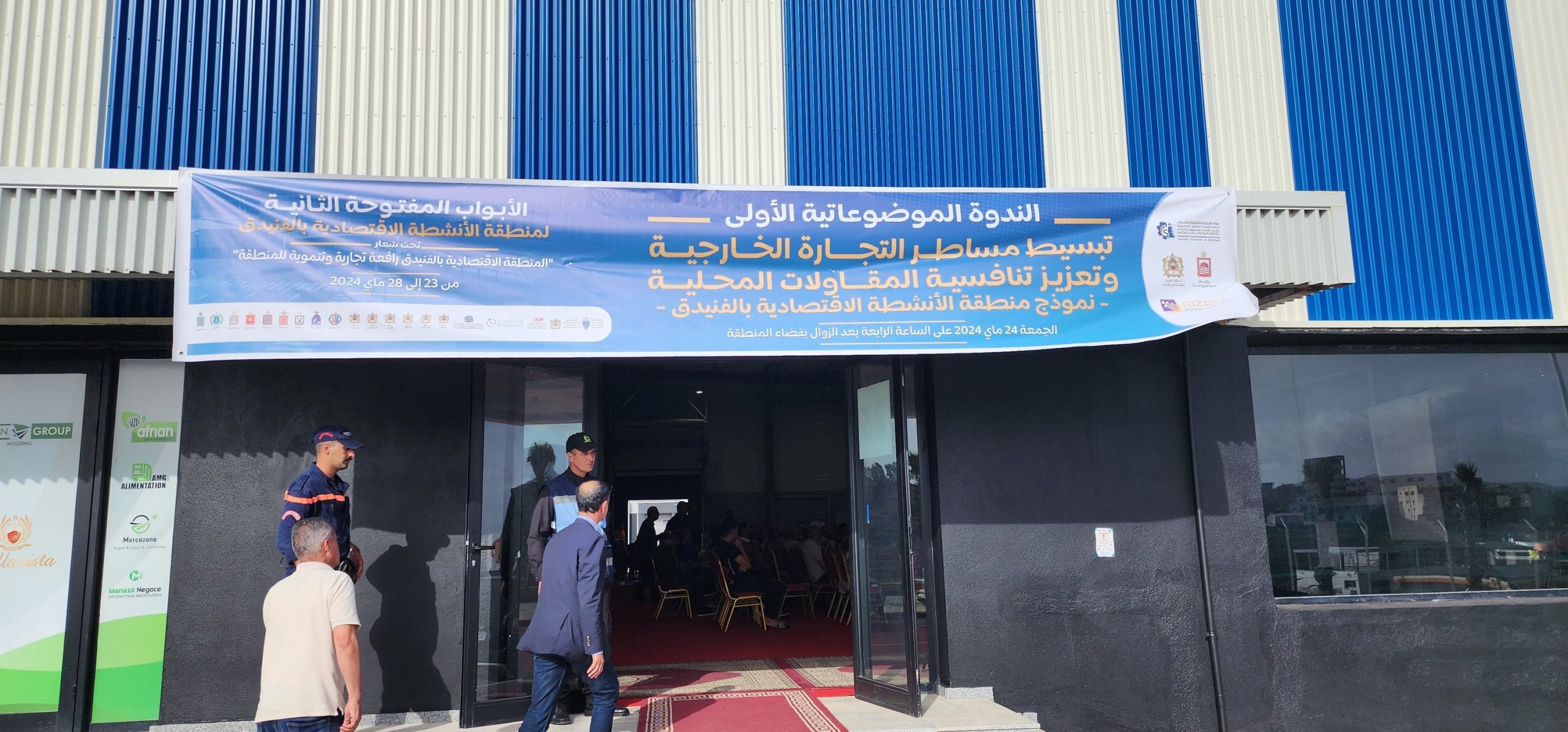 عرف اليوم الثاني من النسخة الثانية من ملتقى الأبواب المفتوحة لمنطقة الأنشطة الاقتصادية بالفنيدق، اليوم الجمعة 24 ماي 2024، الندوة الموضوعاتية الأولى حول موضوع “تبسيط مساطر التجارة الخارجية وتعزيز تنافسية المقاولات المحلية ” منطقة الأنشطة الاقتصادية بالفنيدق نموذجا”.