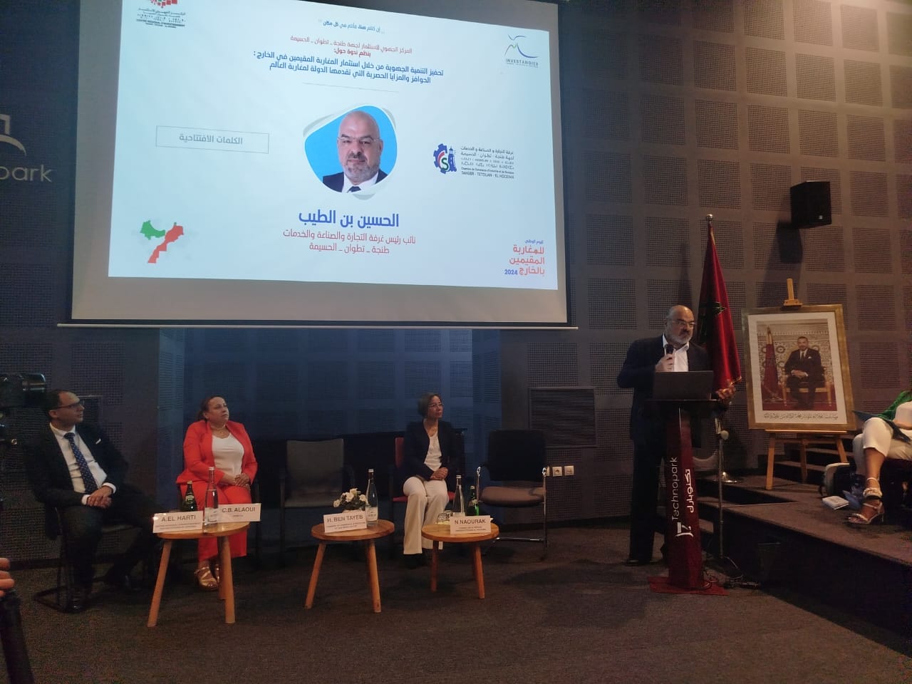 في إطار العناية الخاصة التي يوليها صاحب الجلالة للمغاربة المقيمين بالخارج، وبالتزامن مع اليوم الوطني للمهاجر، الذي يتم الاحتفال به هذا العام تحت شعار: “استثمارات المغاربة المقيمين بالخارج : فرص وآفاق” شارك السيد الحسين بن الطيب نائب رئيس الغرفة مرفوقا بالسيد ياسين العرود رئيس اللجنة الإقليمية الاستشارية لشؤون المهنيين بعمالة طنجة واقليم لفحص أنجرة ورئيس الجمعية المغربية لصناعات النسيج والألبسة – منطقة الشمال في الندوة التي نظمها المركز الجهوي للاستثمار لجهة طنجة-تطوان-الحسيمة تحت عنوان “تحفيز التنمية الجهوية من خلال استثمار المغاربة المقيمين في الخارج: الحوافز والمزايا الحصرية التي تقدمها الدولة لمغاربة العالم” و ذلك يوم الخميس 08 غشت 2024 بتيكنوبارك بطنجة. ومن جانب إدارة الغرفة حضر كل من السيد فؤاد أحلوش الكريستي المدير الجهوي للغرفة، و السيد محمد يجو رئيس قسم الدعم و الترويج.