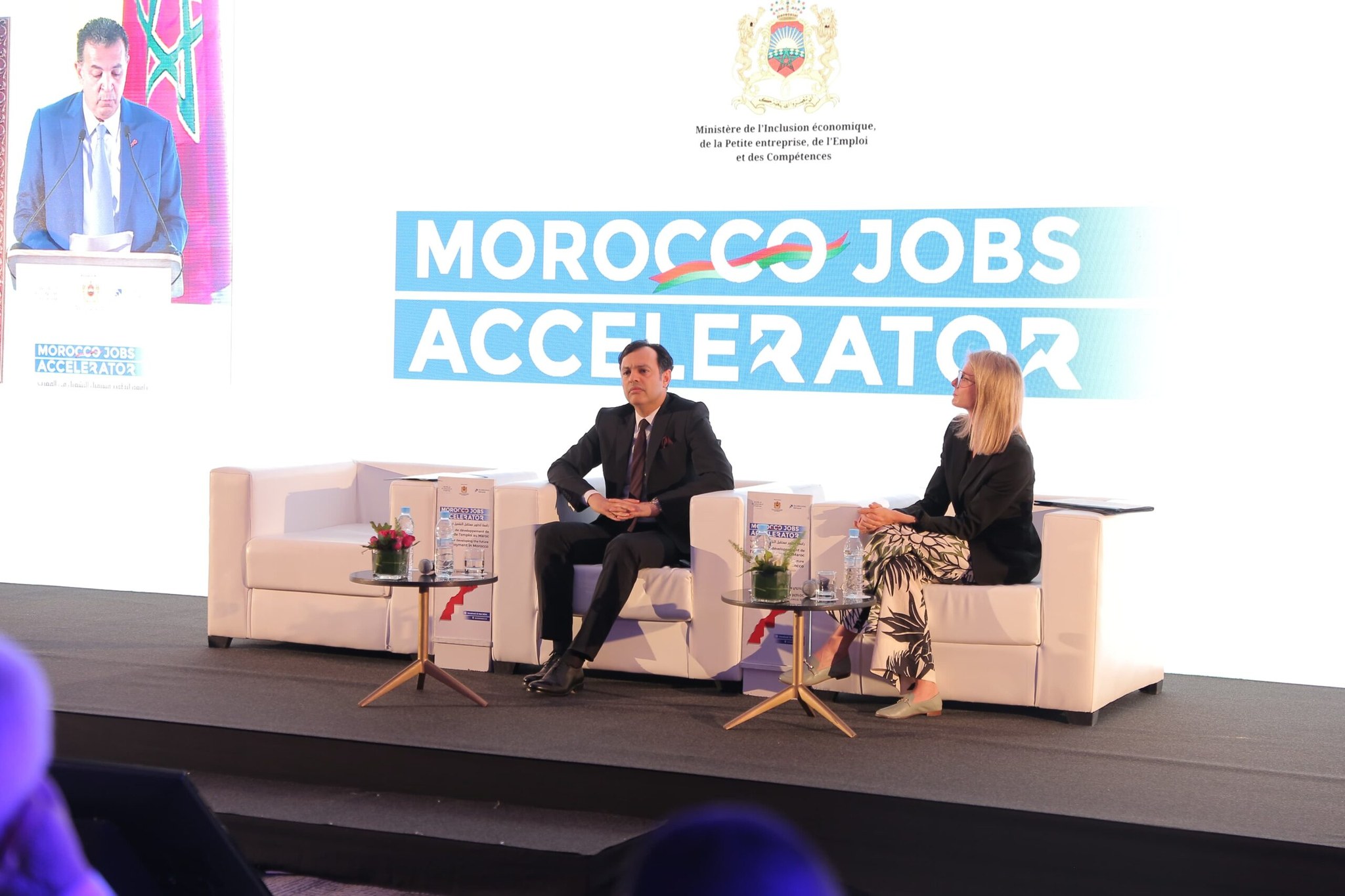 وقد ترأس هذا الحفل السيد يونس السكوري؛ وزير الإدماج الاقتصادي والمقاولة الصغرى والتشغيل والكفاءات، بحضور السيدة إيزابيل ليليرت؛ مديرة قسم العمل والأجور وخلق الوظائف بالمنتدى الاقتصادي العالمي، والسيد شكيب العلج؛ رئيس الاتحاد العام لمقاولات المغرب، فضلا عن العديد من الأكاديميين والخبراء المغاربة والدوليين والمختصين في مجالات الذكاء الاصطناعي، والاقتصاد التضامني، والطاقة الخضراء، وتعبئة القطاع الثالث. وبهذه المناسبة التقى السيد أنوار أربعي بوزير الإدماج الاقتصادي والمقاولة الصغرى والتشغيل والكفاءات، حيث قدم السيد نائب الرئيس الوضعية المتقدمة التي تعيشها المقاولة على مستوى جهة طنجة تطوان الحسيمة عامة، ومدينة طنجة على وجه الخصوص. كما شرح السيد ياسين العرود للسيد الوزير، بعض القضايا والانشغالات التي تشغل بال المهتمين بقطاع النسيج، وكذا المستجدات التي يعرفها قطاع النسيج بالشمال.